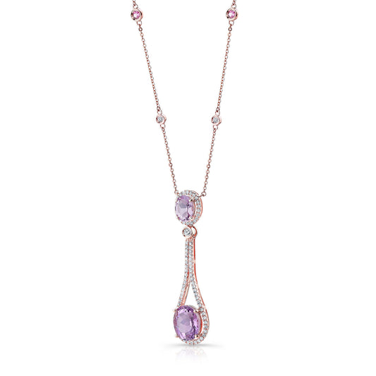 Amethyst, Pink Tourmaline And Diamond Pendant Pendulum Necklace In 14k Rose Gold