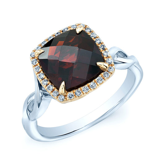 Garnet And Diamond Twist Ring In 14k Two Tone