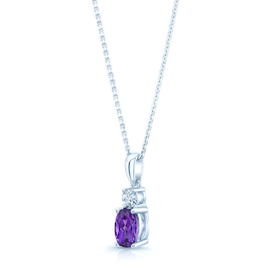 Amethyst Oval And Diamond Pendant In 14k Gold (7x5 Mm)