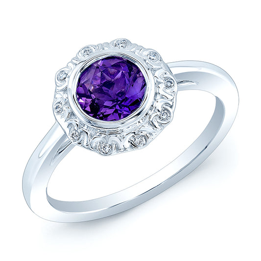 Amethyst And Diamond Round Halo Antique Finish Ring In 14k Rose Gold ( Hi / Si )