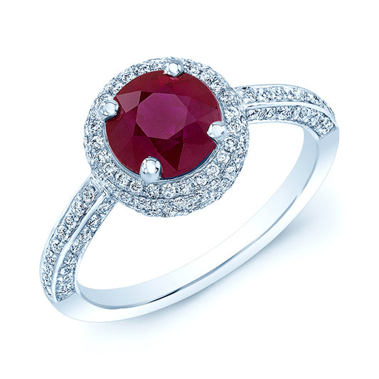 Ruby Round And Diamond Pave Ring 14k White Gold