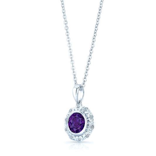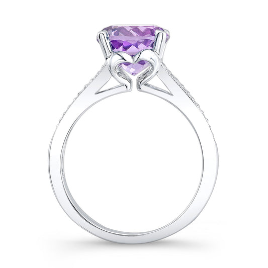 Amethyst Solitaire And Diamond Ring In 14k White Gold