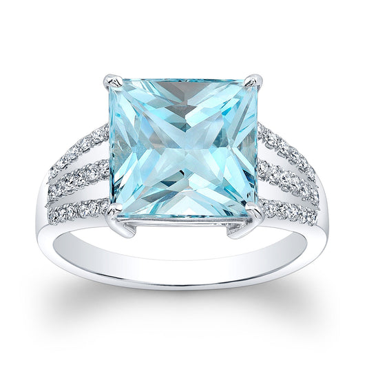 Aquamarine And Diamond Split Shank Ring In 18k White Gold