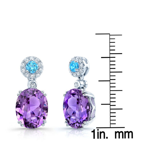 Amethyst, Swiss Blue Topaz And Diamond Earrings In 14k White Gold (9x7mm)