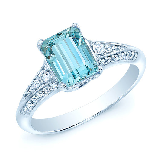 Aquamarine And Diamond Ring In 18k White Gold