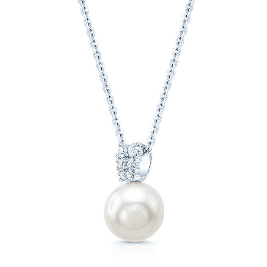 White Cultured Akoya Pearl Pendant With Diamond Prong-set Tapered Bail In 14k White Gold