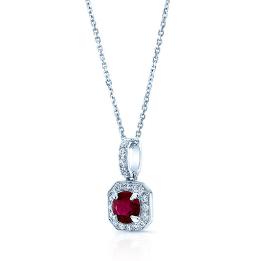 Ruby And Diamond Pave Pendant In 14k White Gold (1/6 Ct. Tw.)