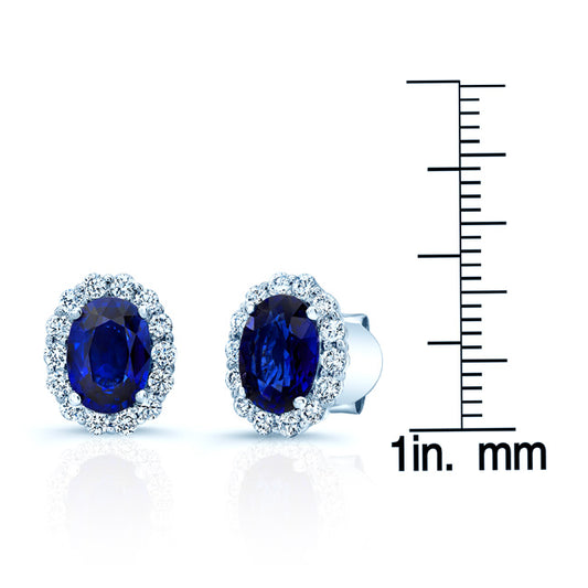 Sapphire Oval And Diamond Earrings In 14k White Gold (1/2 Tw. Tw.)