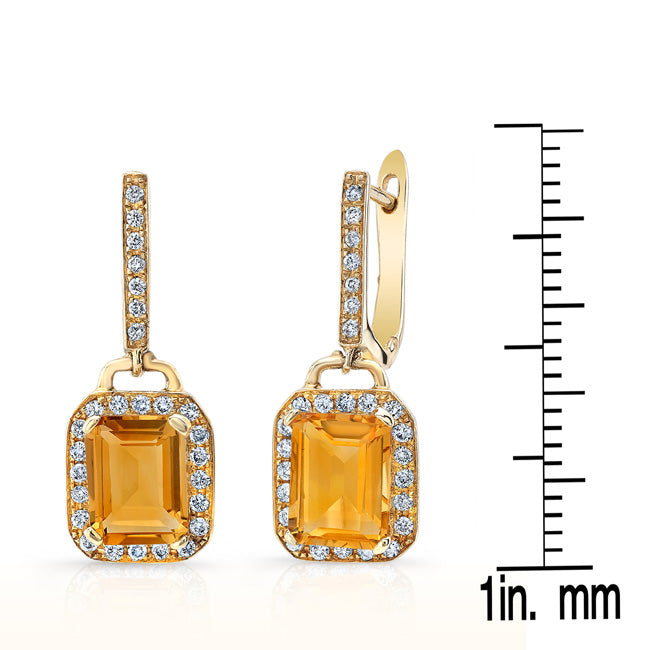 14k Yellow Gold Earring With 2 Emerald Cut Citrine At 8x6mm (2.80ctw) And 54 Round Brilliant Diamonds Weighing 0.33ctw