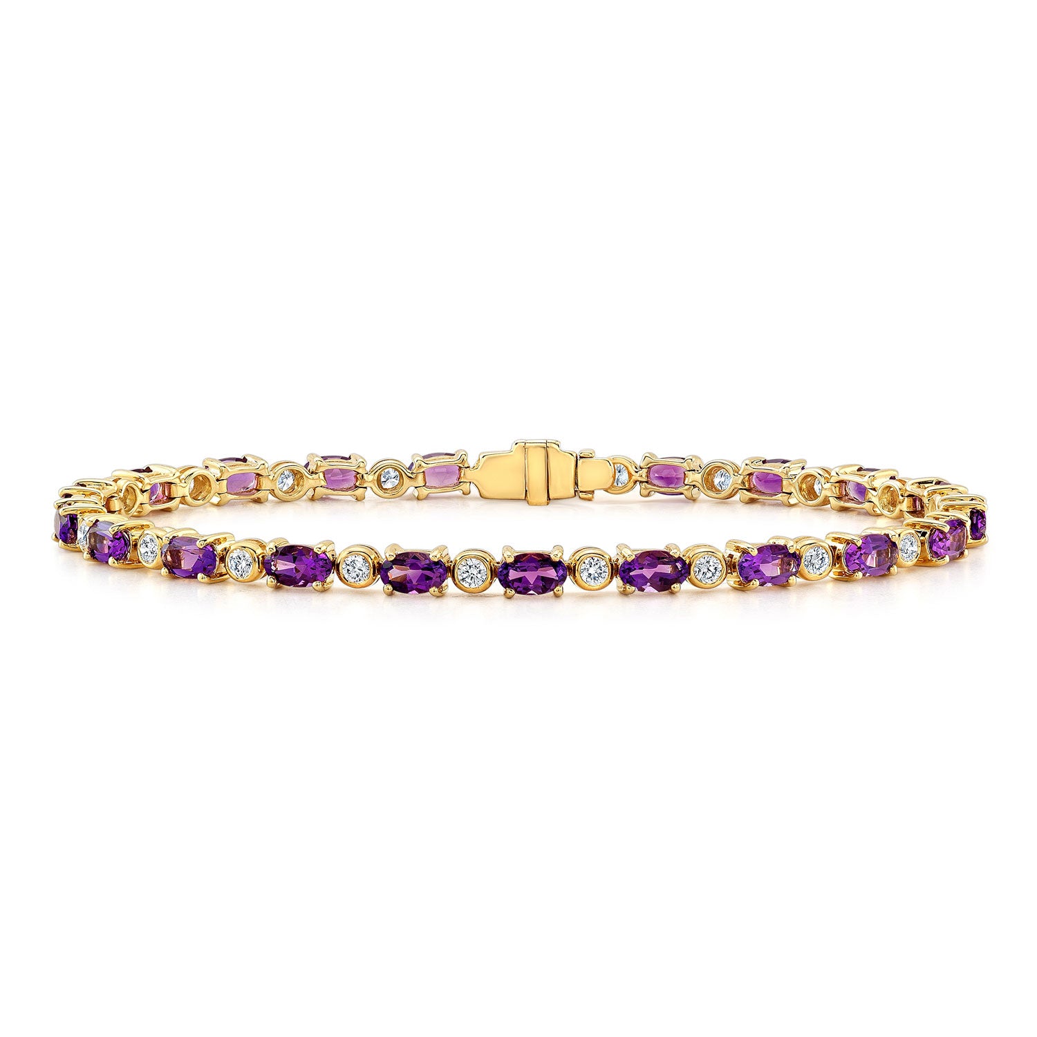 14k Yellow Gold Bracelet With 21 Oval Amethysts At 5x3mm And 21 Round Brilliant Diamonds Weighing 3/4 Carat