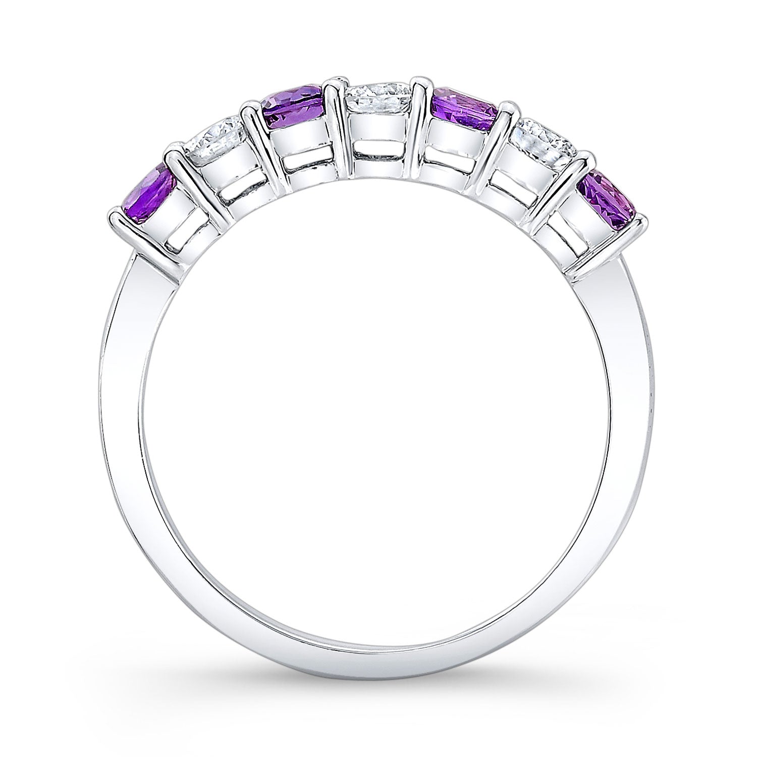 14k 3mm Amethyst, 3 Round Brilliant=0.29ctw Diamond Band