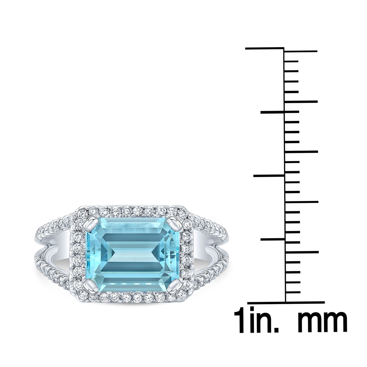 18k White Gold Ring With 1 Octagon-cut Aquamarine At 10x8mm (2.75ct) And 78 Round Brilliant Diamonds Weighing 0.65 Carats