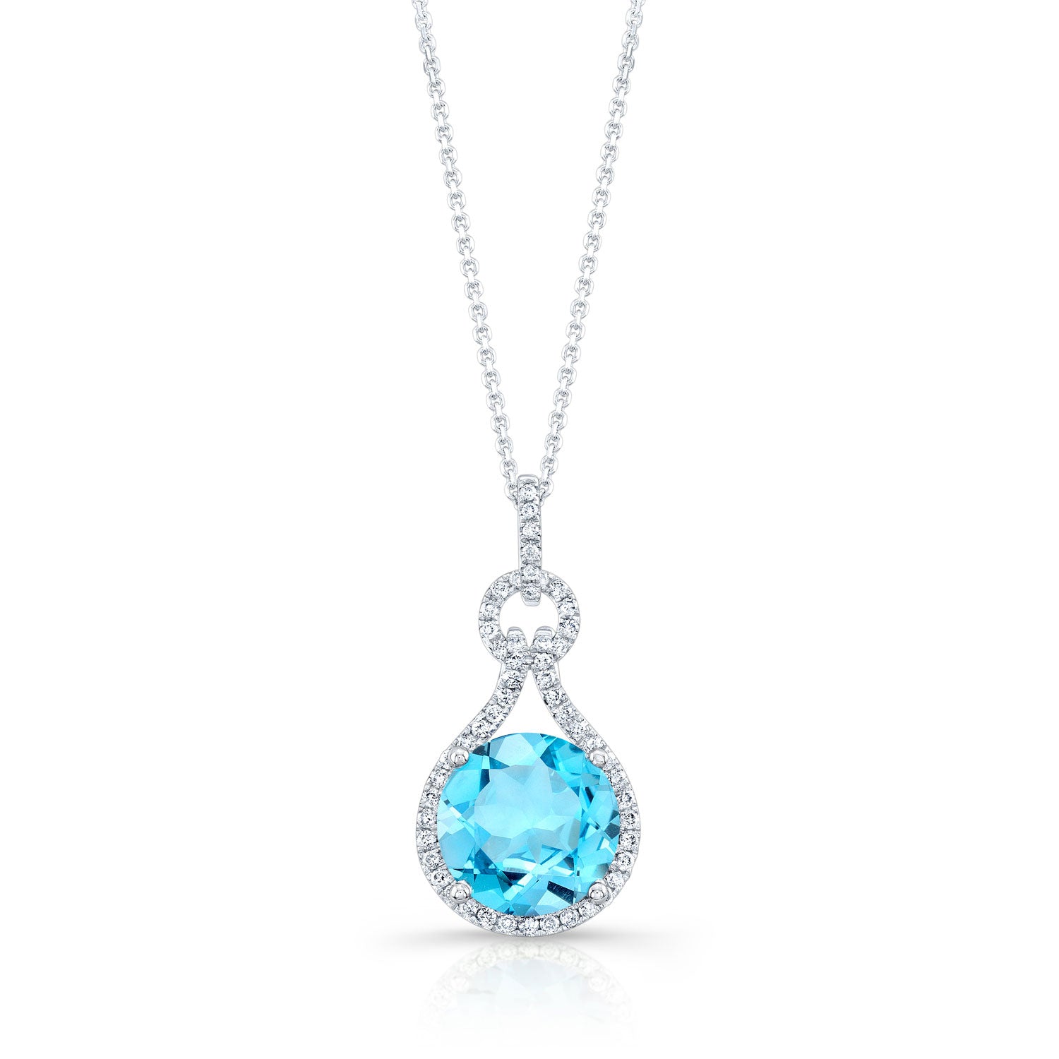 Blue Topaz And Diamond Doorknocker Pendant In 14k White Gold (10mm Round Center)