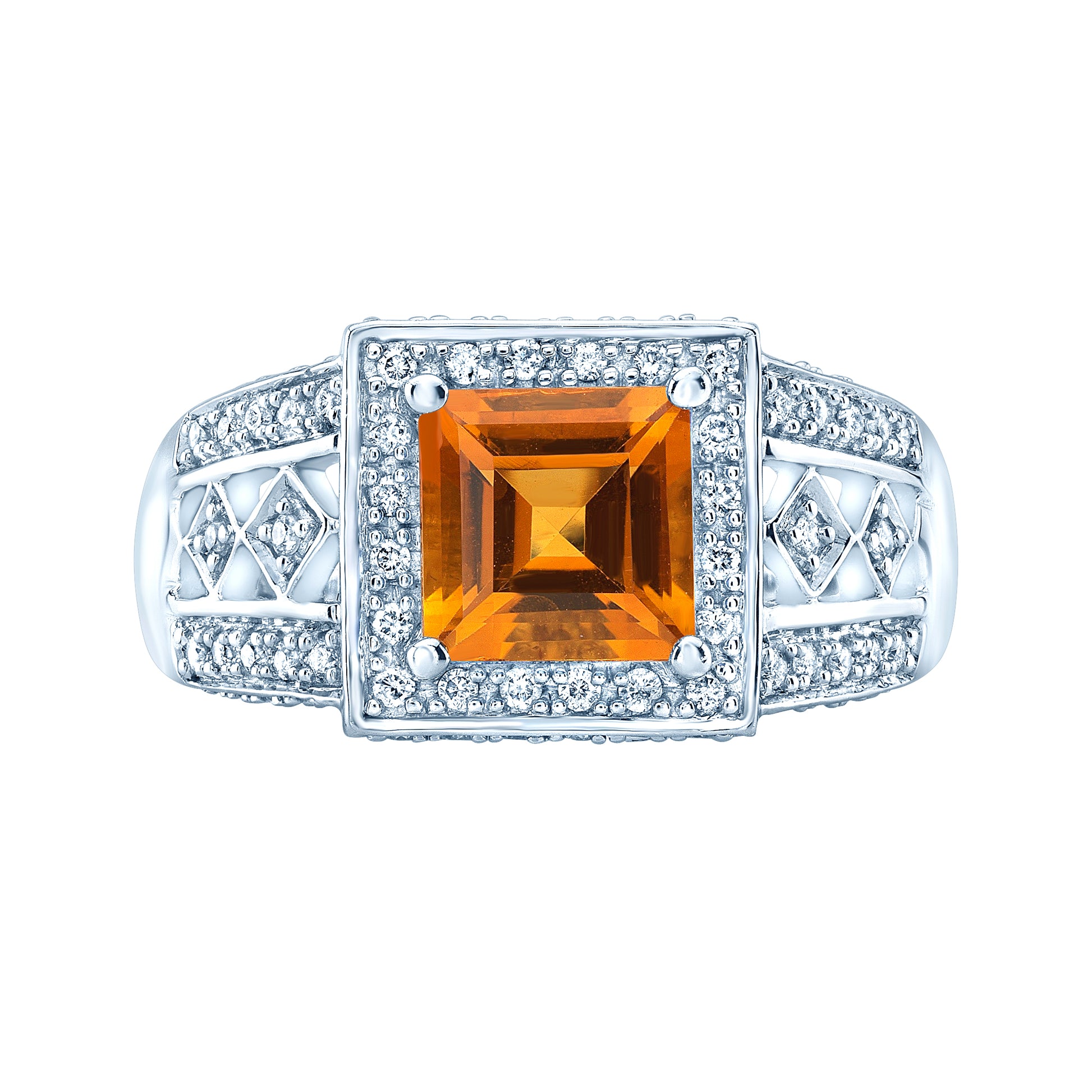 14 Karat White Gold Ring With 1 Square Citrine 7mm And 78 Round Brilliant Diamonds 0.40ctw