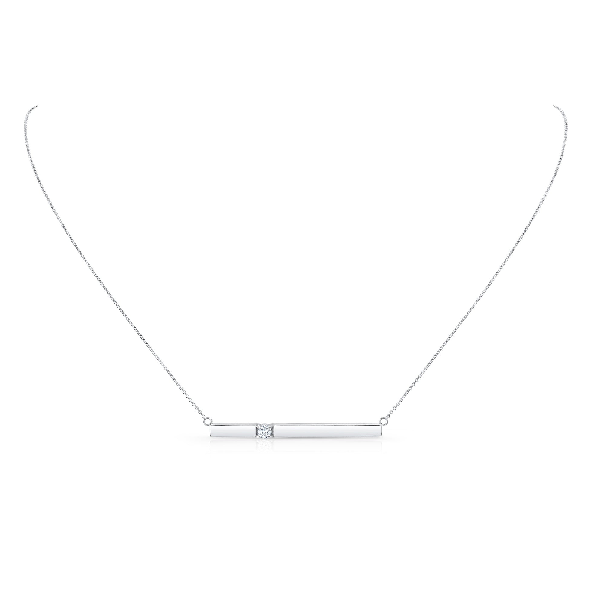 14 karat white gold bar necklace with rolo chain and 1/10 carat round brilliant diamond, 17 inch chain