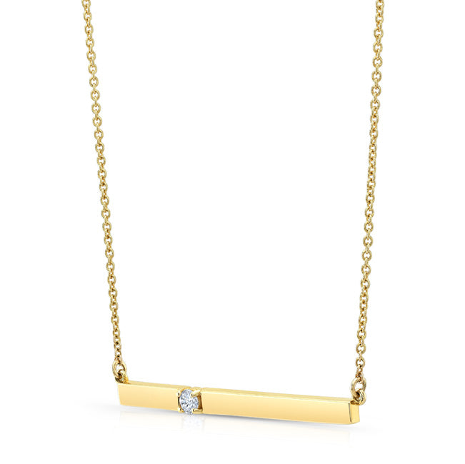 14 Karat Yellow Gold Bar Necklace With 1 Round Brilliant Cut Diamond Weight 0.10carat And 17 Inches Rolo Chain
