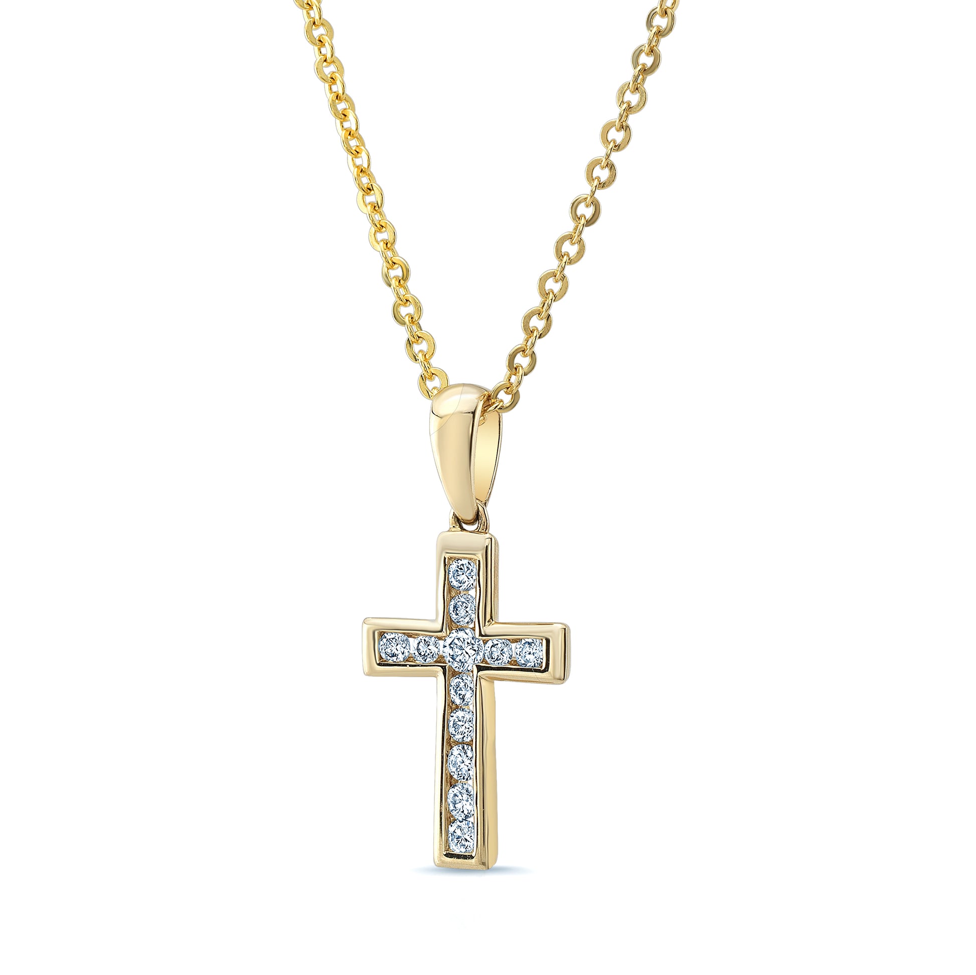 Diamond Channel-set Petite Cross Pendant In 14k Yellow Gold