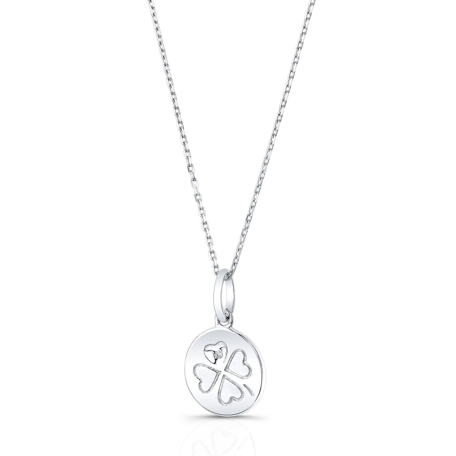 Diamond Charm Pendant With Carved Hearts In 14k White Gold (0.0035 Ct.tw)