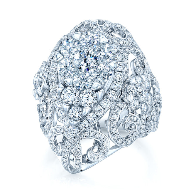 14k White Gold Coronet Ring With 246 Round Brilliant Diamonds Weighing 3.25 Carats