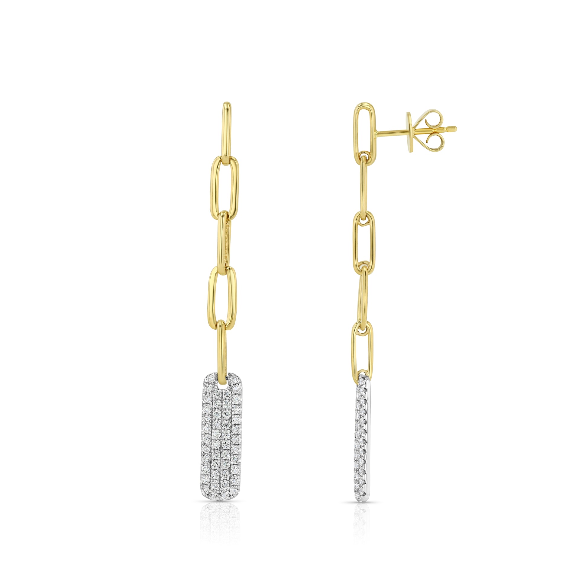 14 karat two tone gold dangle paper clip earrings with 92 round brilliant diamonds 5/8ctw
