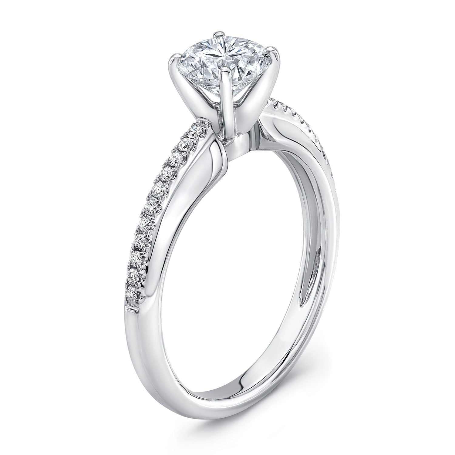 14 Karat White Gold Ring With Round Brilliant Diamond Center 1.01 Ct And 22 Round Brilliant Diamonds 1/10 Ctw