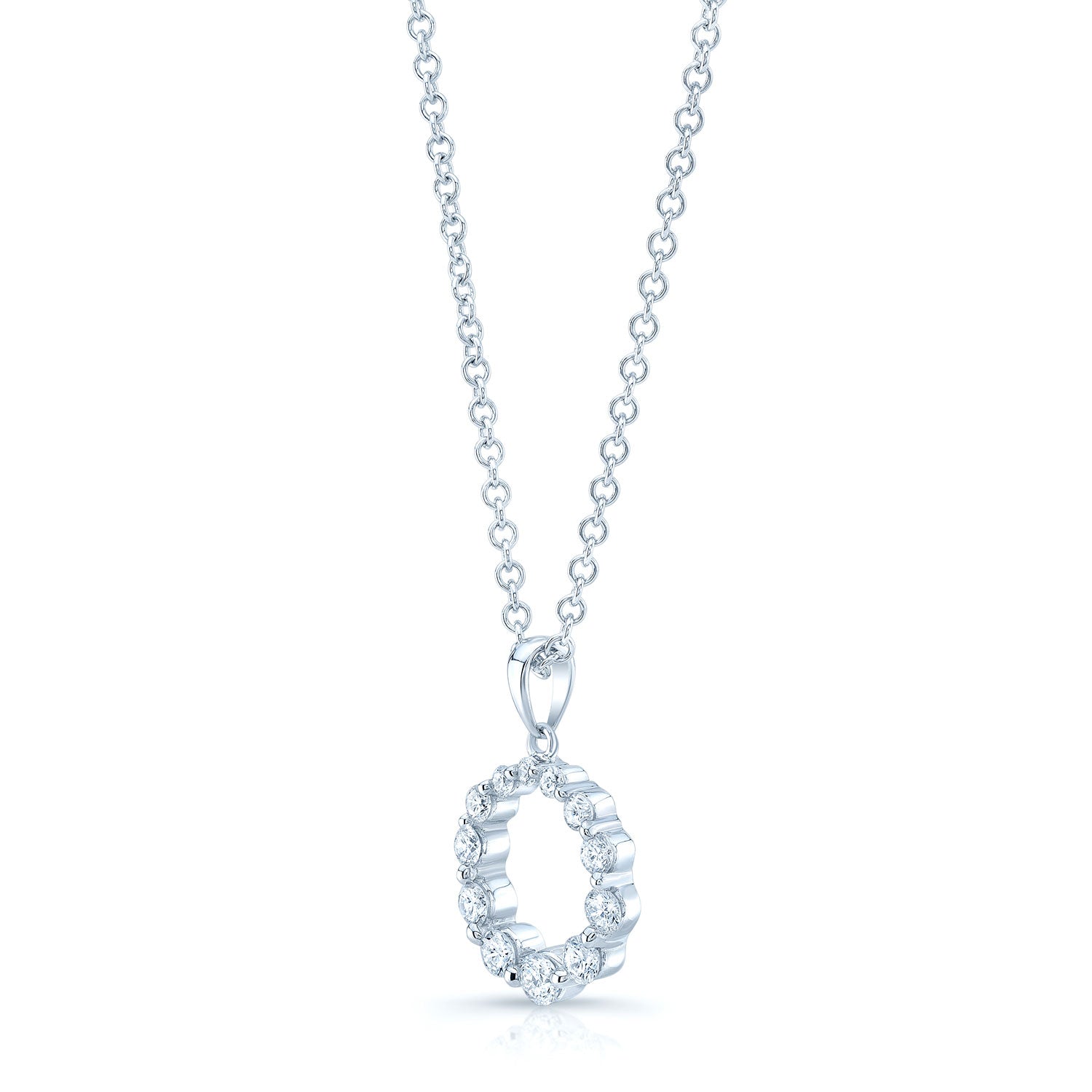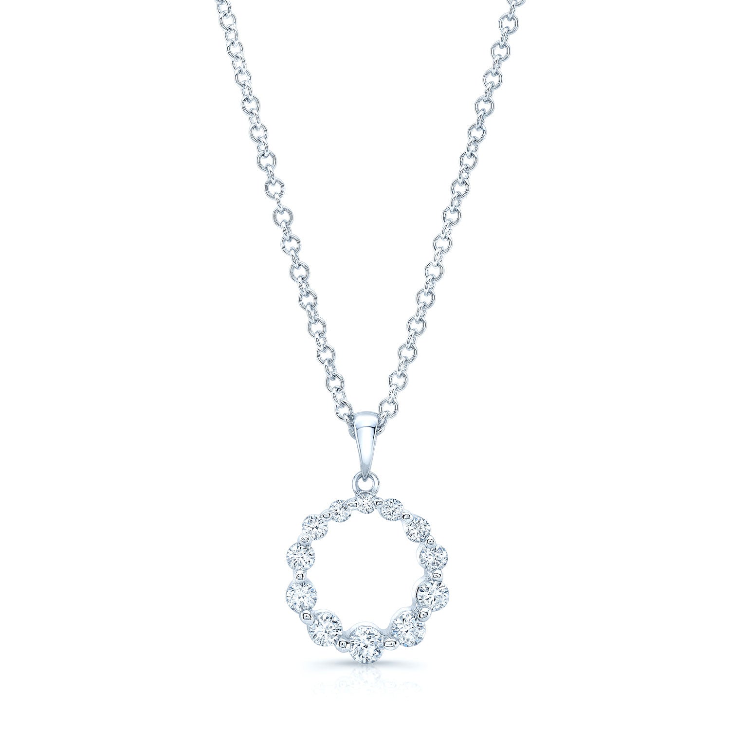 Diamond Graduated Circle Diamond Pendant In 14k White Gold