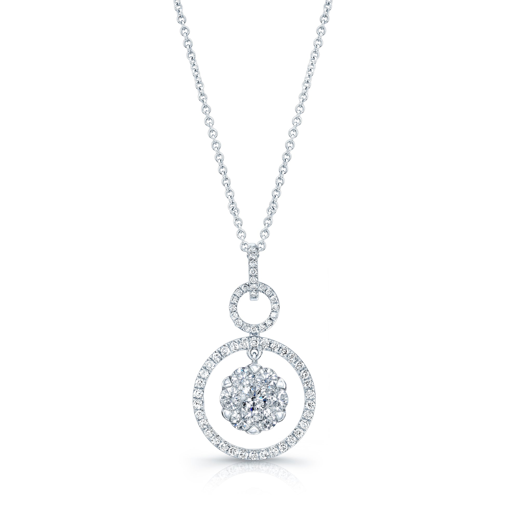 14k White Gold Coronet Hemsut Pendant With 63 Round Brilliant Diamonds Weighing 1.08 Carats On 18 Inch Rolo Chain