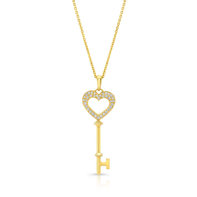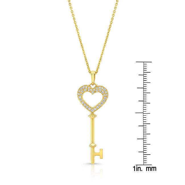 Diamond Heart Key Pendant In 14k Yellow Gold (1/6 Ct.tw)