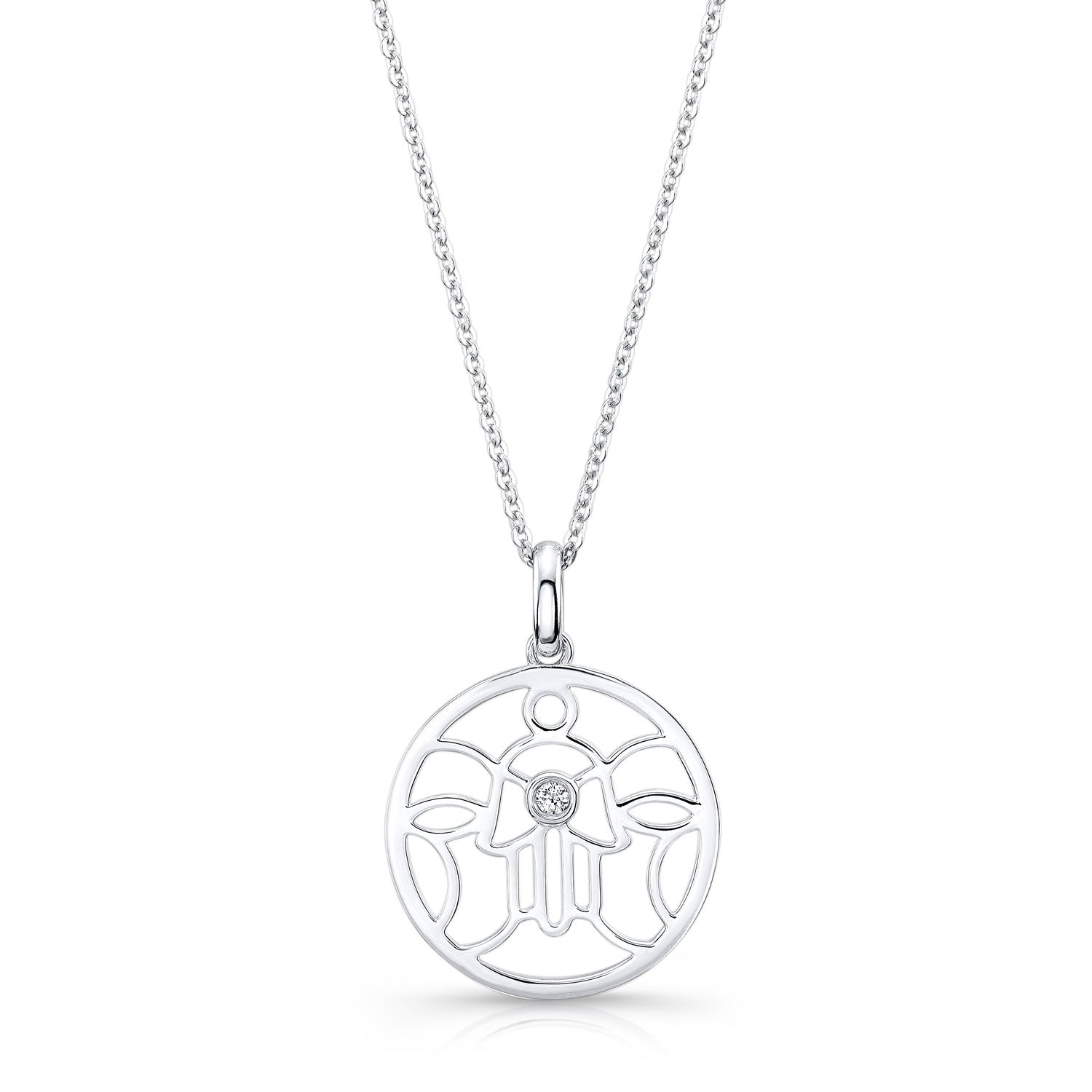 Diamond Khamsa Circle Pendant In 14k White Gold