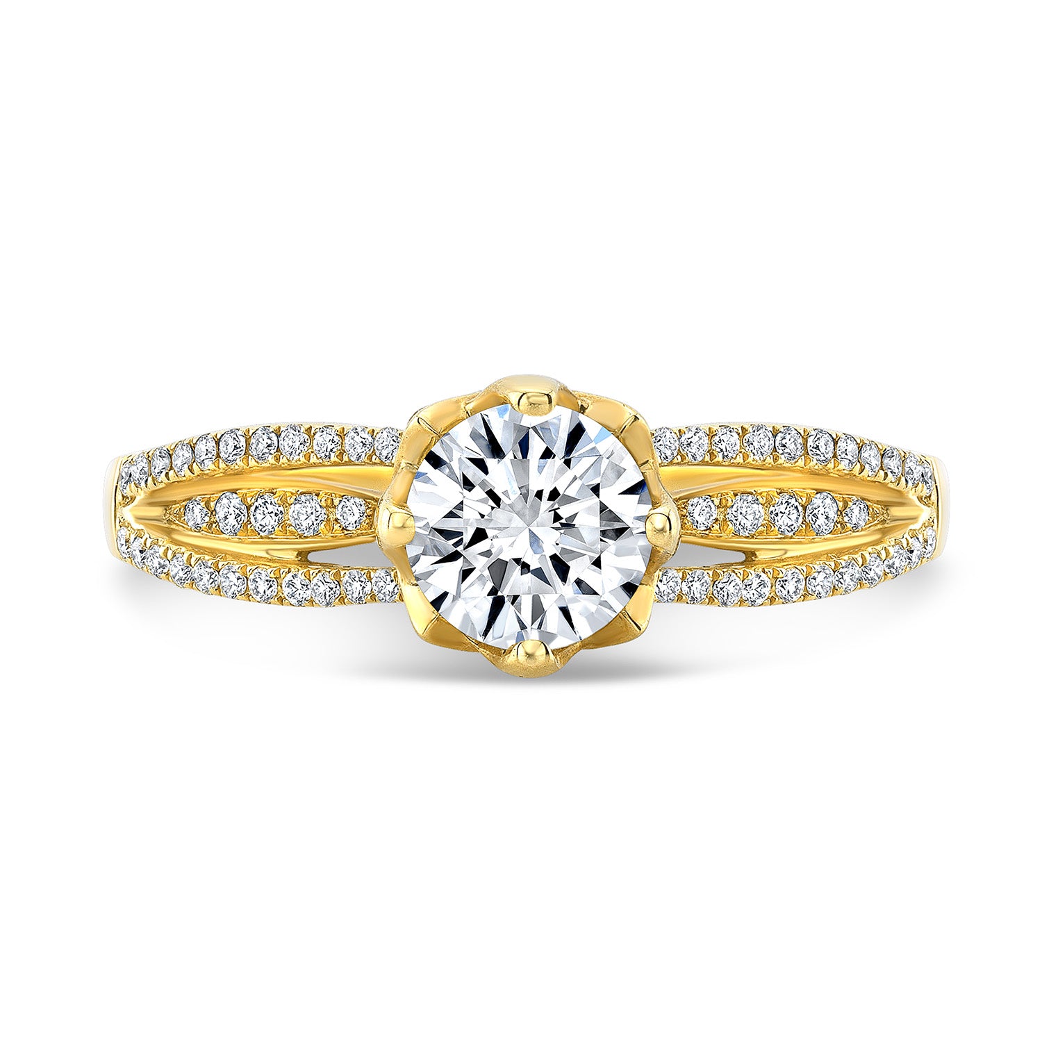 Diamond Lotus Head Split Shank Engagement Ring In 18k Yellow Gold