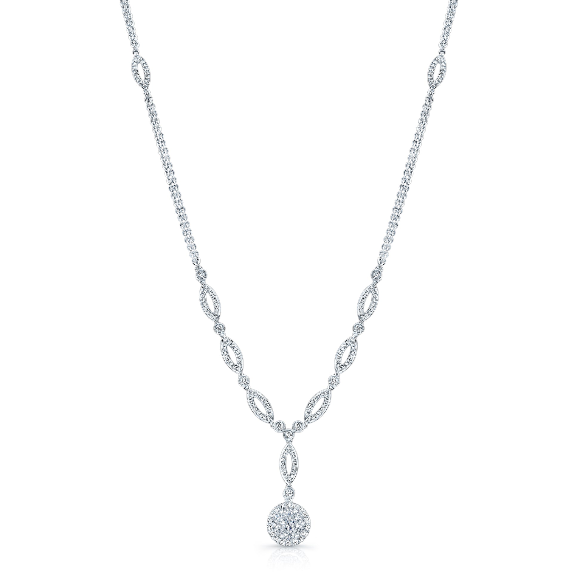 Diamond Marquise Link Necklace With Double Strand Chain In 14k White Gold