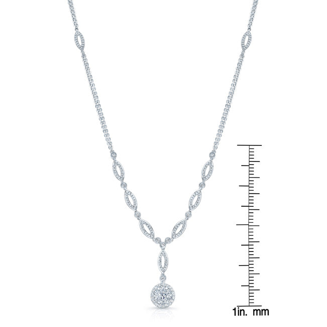 14 Karat White Gold Coronet Petbe Necklace With 7 Round Brilliant Diamonds Weighing 0.25 Carats And 140 Round Brilliant Diamonds Weighing 0.60 Carats (1 Carat Look)