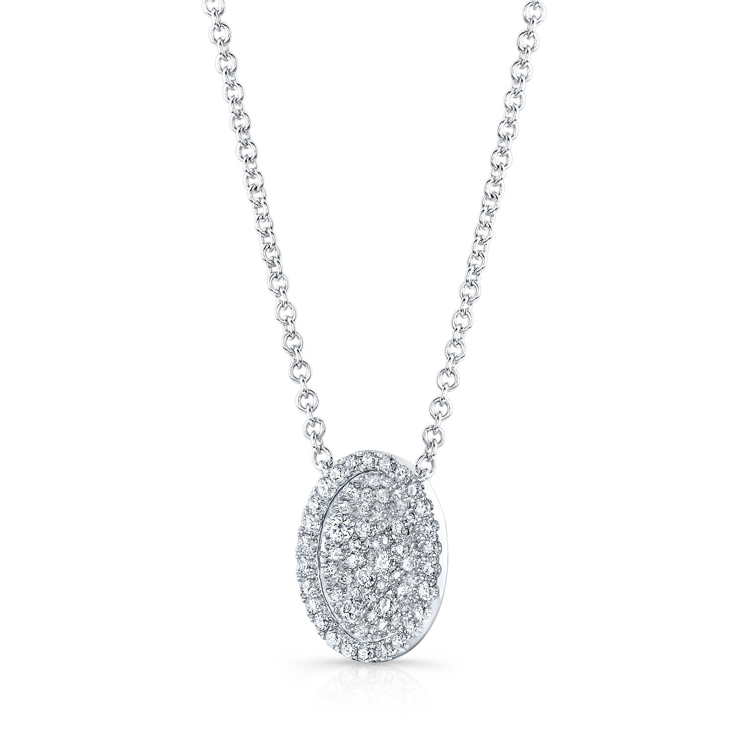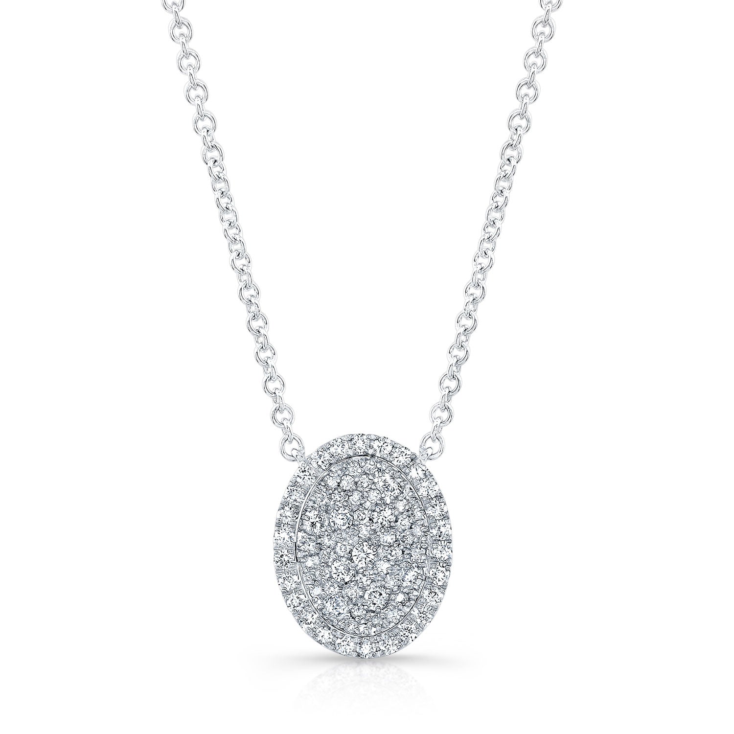 Diamond Pave Concave Oval Necklace In 18k White Gold