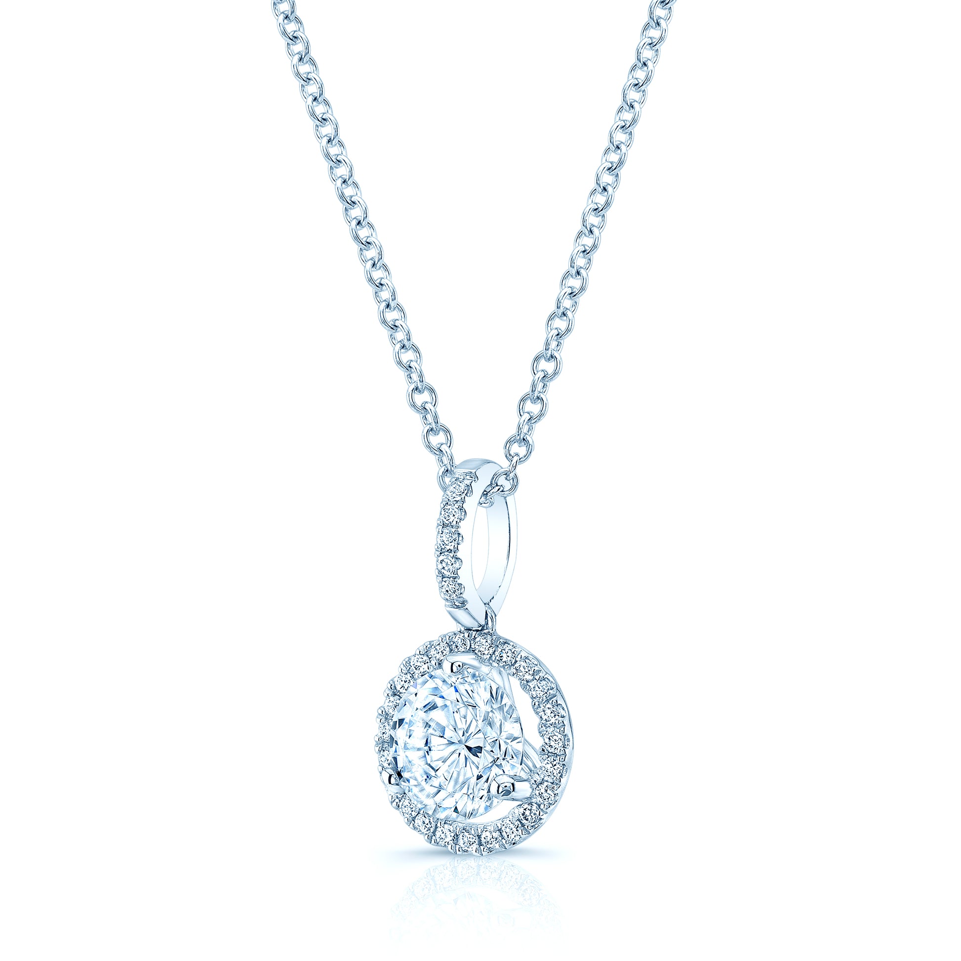 14 Karat White Gold Pendant With 26 Round Brilliant Diamonds Weighing 0.12 Carat With 1 Round Brilliant Diamond Weighing 1.01 Carat