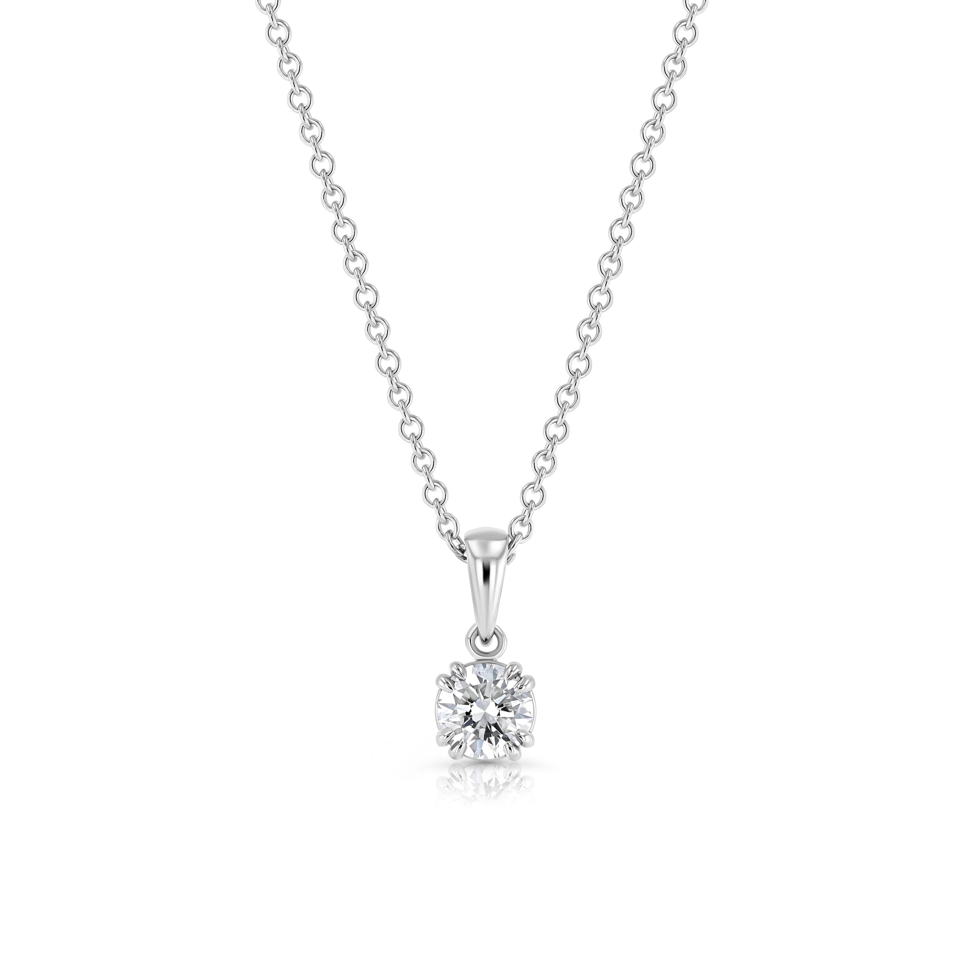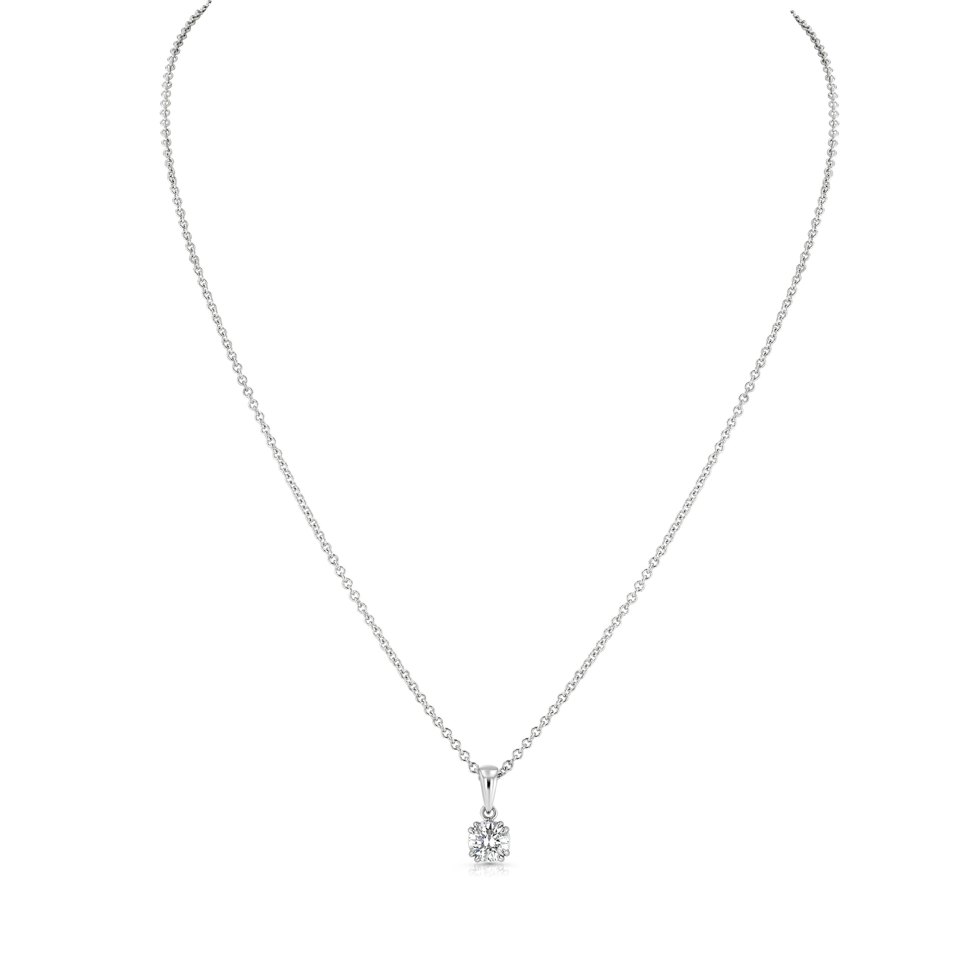 Diamond Round Solitaire Pendant (0.75ct) In 18k White Gold, 16 Inch