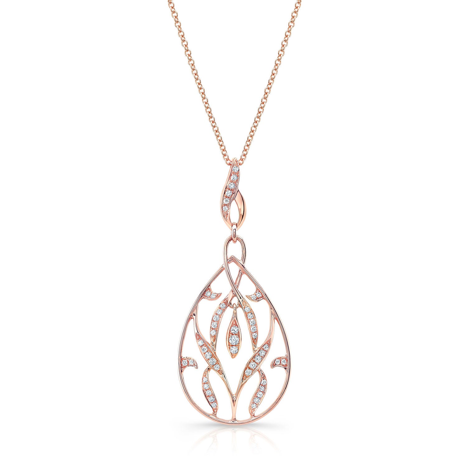 Diamond Teardrop Leaf Pendant In 14k Rose Gold