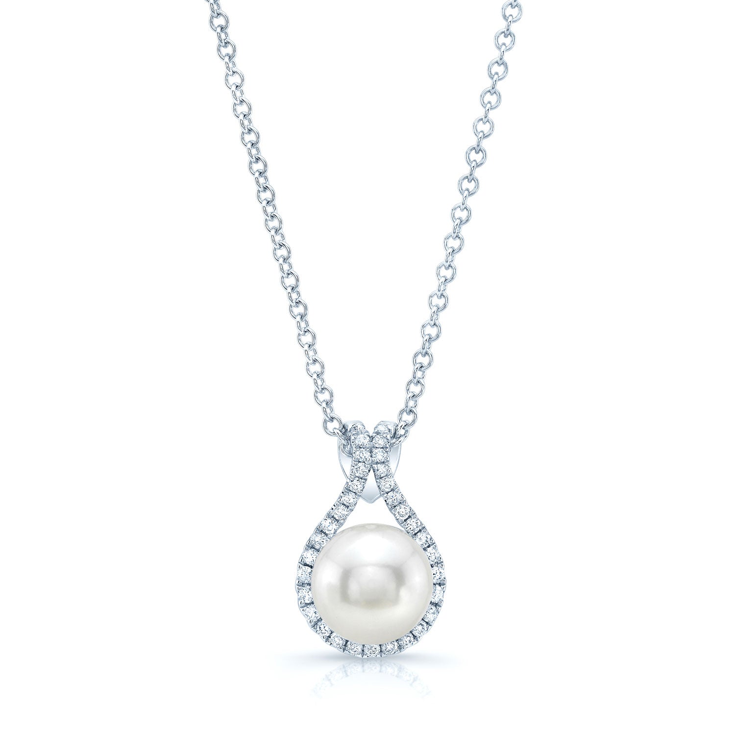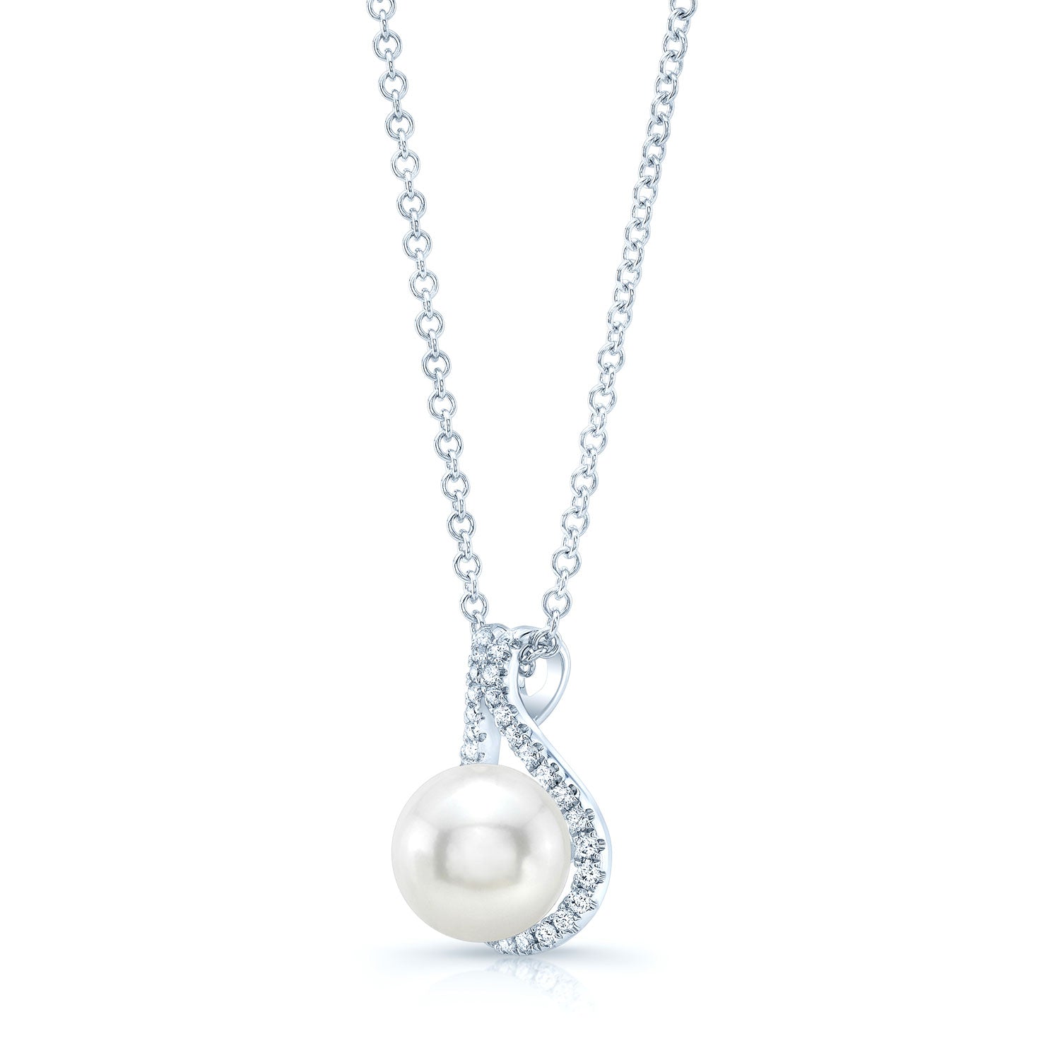 14k White Gold Pendant 8.50mm Fresh Water Pearl 33 Round Brilliant=1/5ctw 17 Inch Twisted Chain