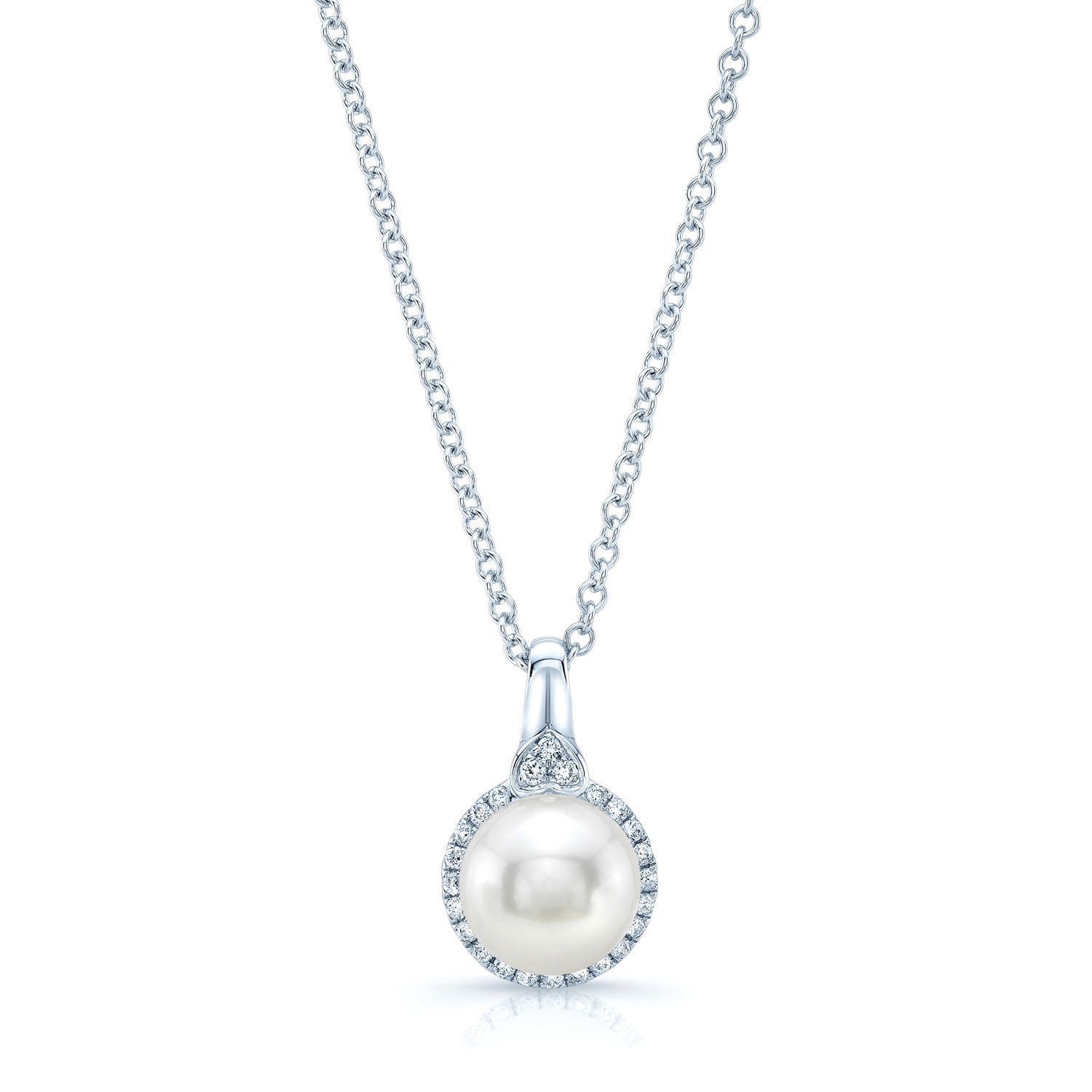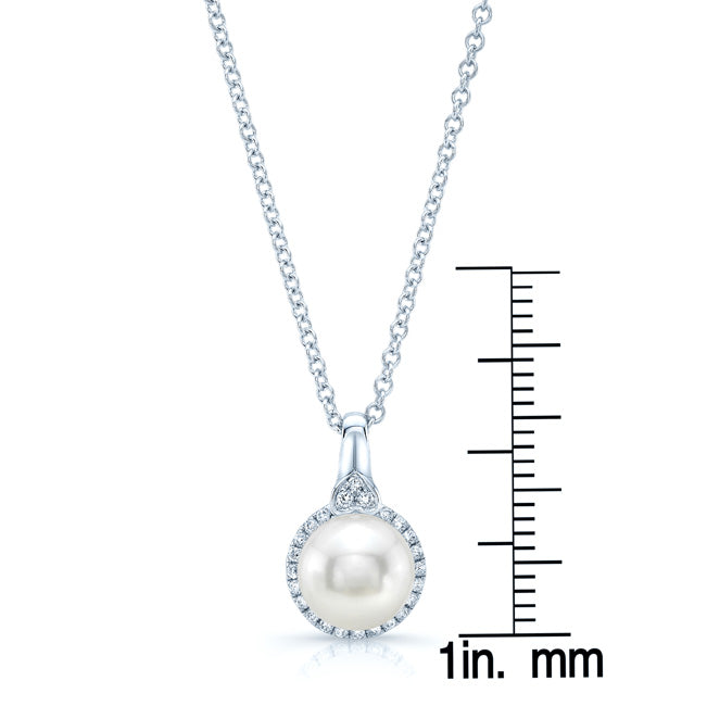 14k White Gold Pendant 8.50mm Fresh Water Pearl 24 Round Brilliant=1/6ctw 17 Inch Twisted Chain