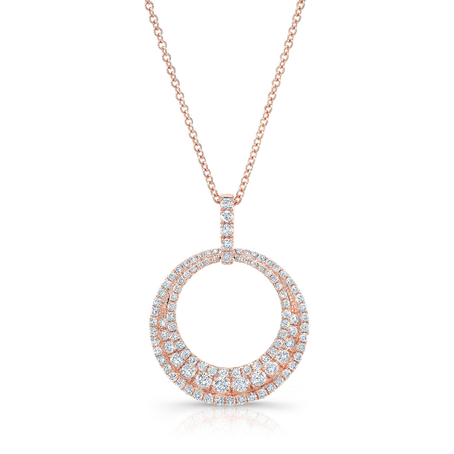 Graduated Circle Three Rolls Diamond Pendant In 14k Rose Gold