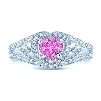 Heart Pink Sapphire And Diamond Split Shank Halo Ring In 14k White Gold (hi/si) (4mm)