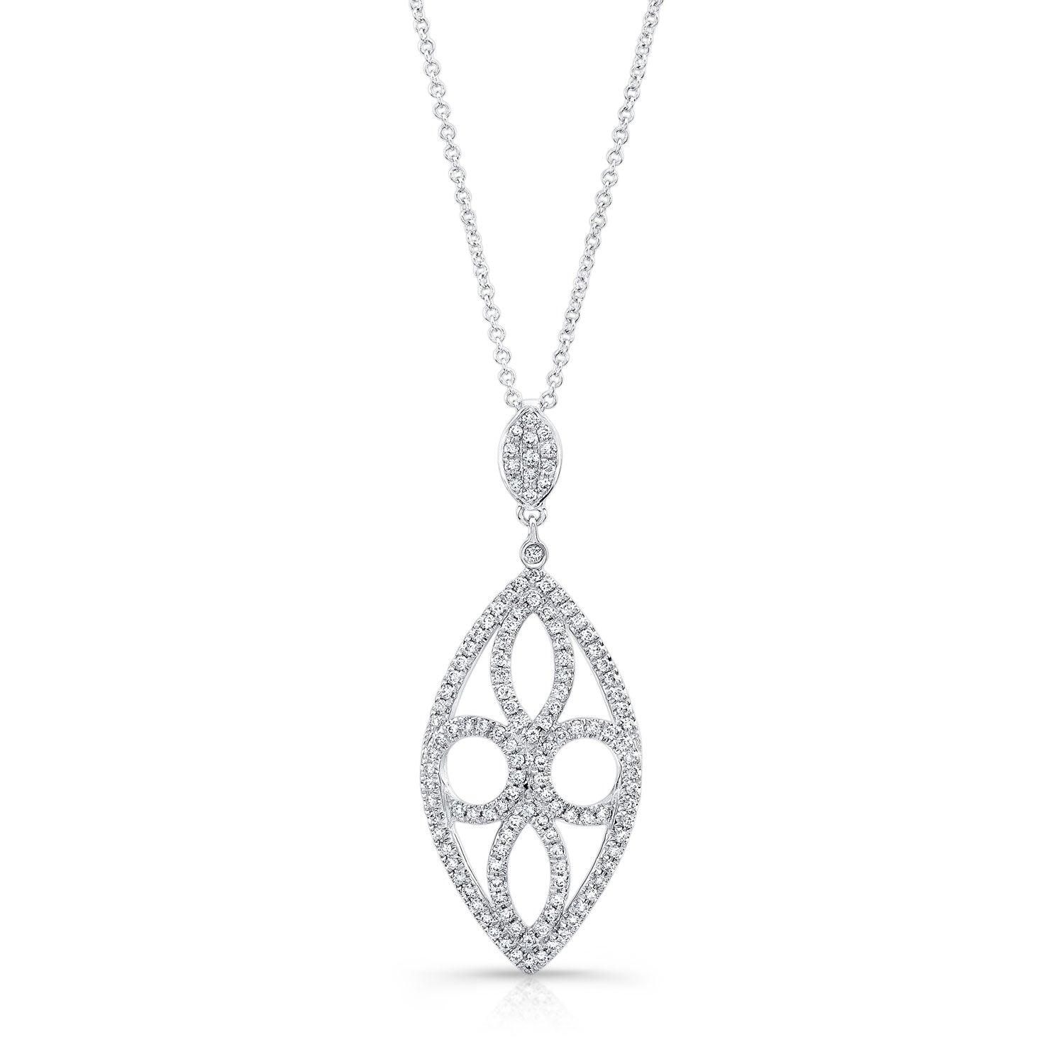 Marquise Shaped Diamond Pave Pendant In14k White Gold