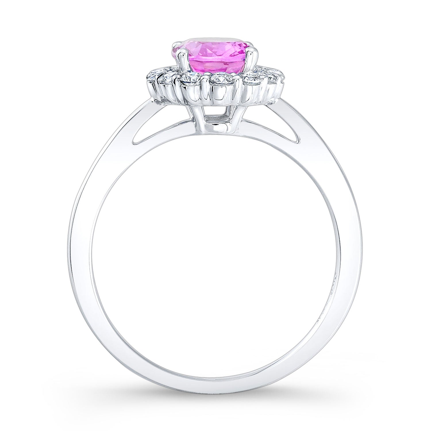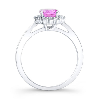 Oval Pink Sapphire And Diamond Halo Ring In 14k White Gold