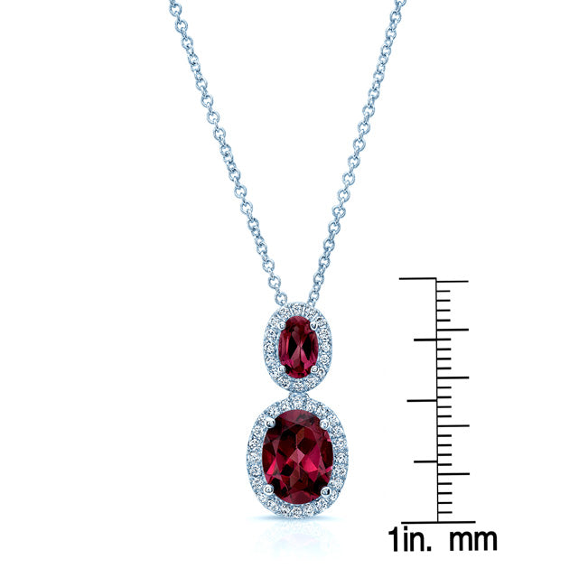 14k White Gold Pendant With 1 Oval Pink Tourmaline At 5x3mm(0.20ct), 1 Oval Rhodolite Garnet At 8x6mm(1.40ct) And 40 Round Brilliant Diamonds Weighing 0.25 Carats On A 17 Inch Rolo Chain