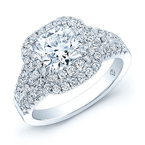 Prong Set Double Halo Cushion Cut Engagement Ring In 18 Karat White Gold