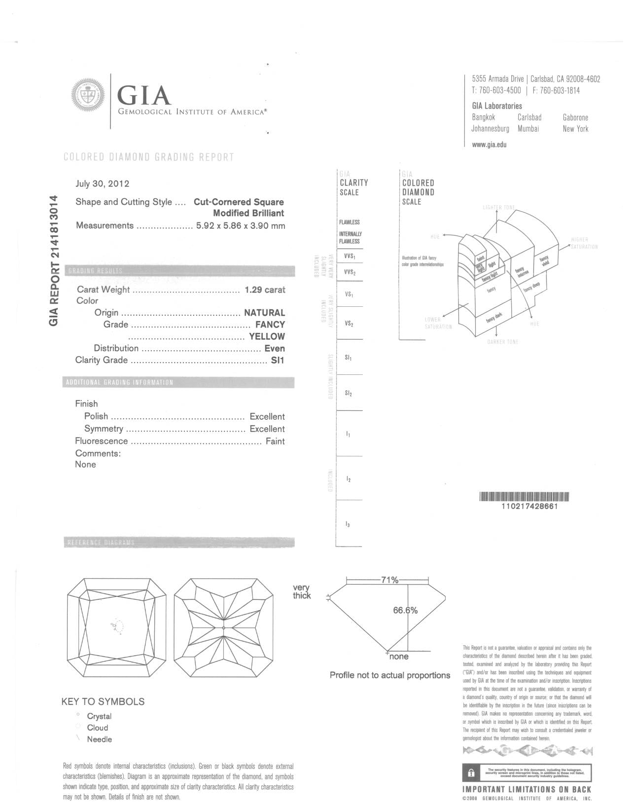 Platinum And 18 Karat Yellow Gold Engagement Ring With 1 Fancy Light Yellow Gia Certified Radiant Cut Diamond Weighing 4.75ct And 90 Round Brilliant Cut Diamonds Weighing 0.56ct
