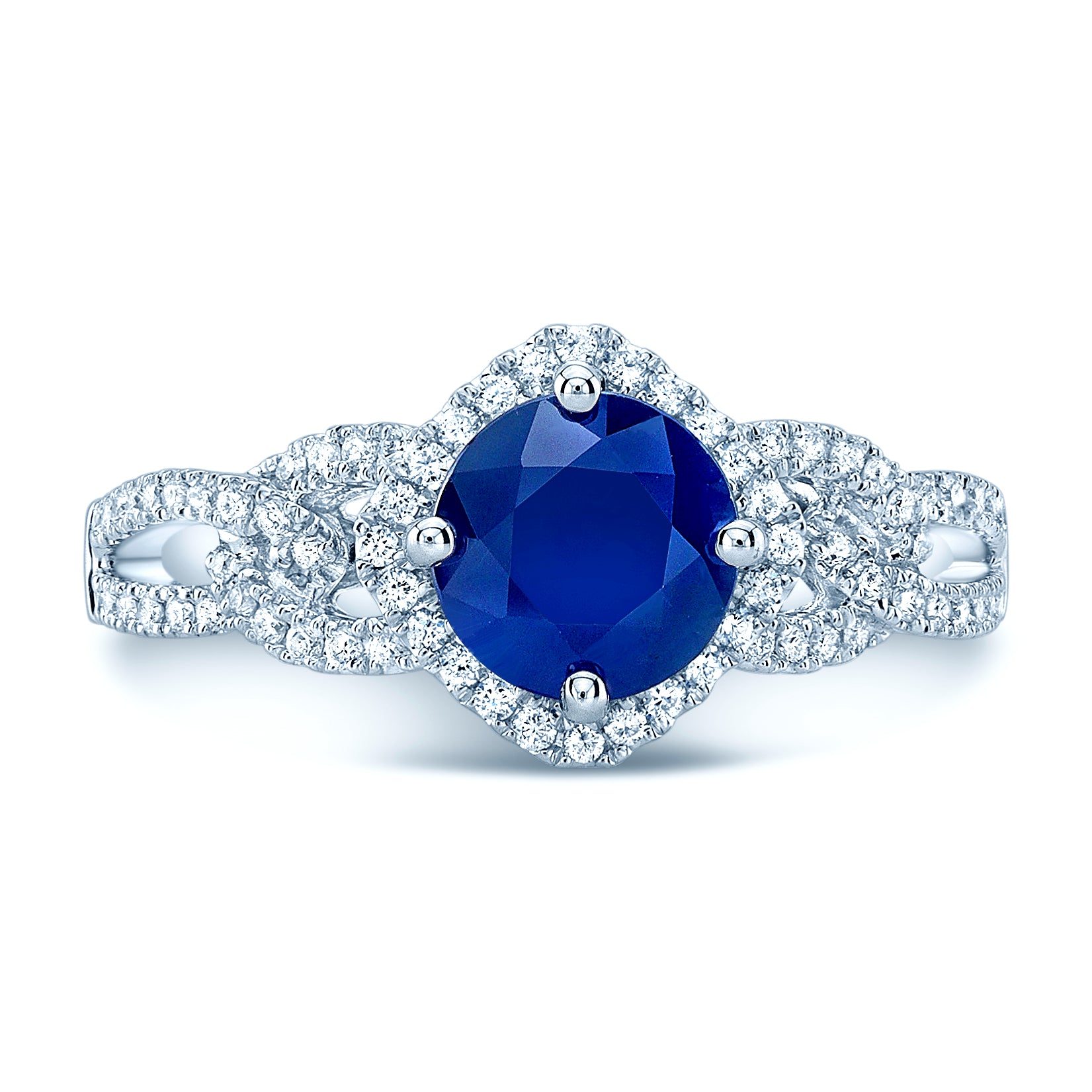 Round Blue Sapphire And Diamond Twisted Halo Ring In 14k White Gold ( Hi/si) (6.5mm)