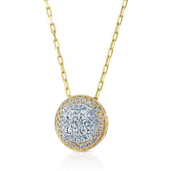 Round Diamond Halo Cluster Pendant In 14k Two Tone Gold (5/8 Ct.tw.)