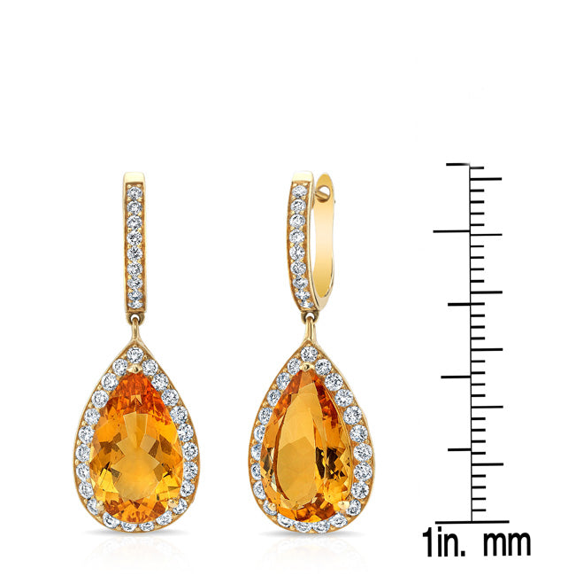18k Yellow Gold Earrings With 2 15x9mm Pear Shape Smokey Quartz And 64 Brilliant Cut Diamonds Weighing 1 1/6 Ctw.